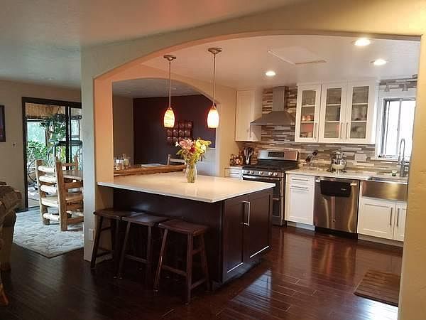 Perfectly renovated with high end finishes! This lovely 4 bedroom, with possible 5th bedroom AND a recreation room in basement, 2 bath, neighborhood home is a dream! Stainless Steel appliances, quarts countertops, top of the line bathroom upgrades with a blue tooth speaker in the light fixture for music while you shower! The living room has gel fireplace and large windows overlooking a big back yard! Sunroom off the dining/kitchen and an attached garage and washer/dryer in their own laundry room make this just right for the right folks! 2400.00 + utilities! Available June 15th. Please Call Renee at Harmony Real Estate for a showing 970-759-1213. Sorry, no pets, and no students. Tenant pays utilities.