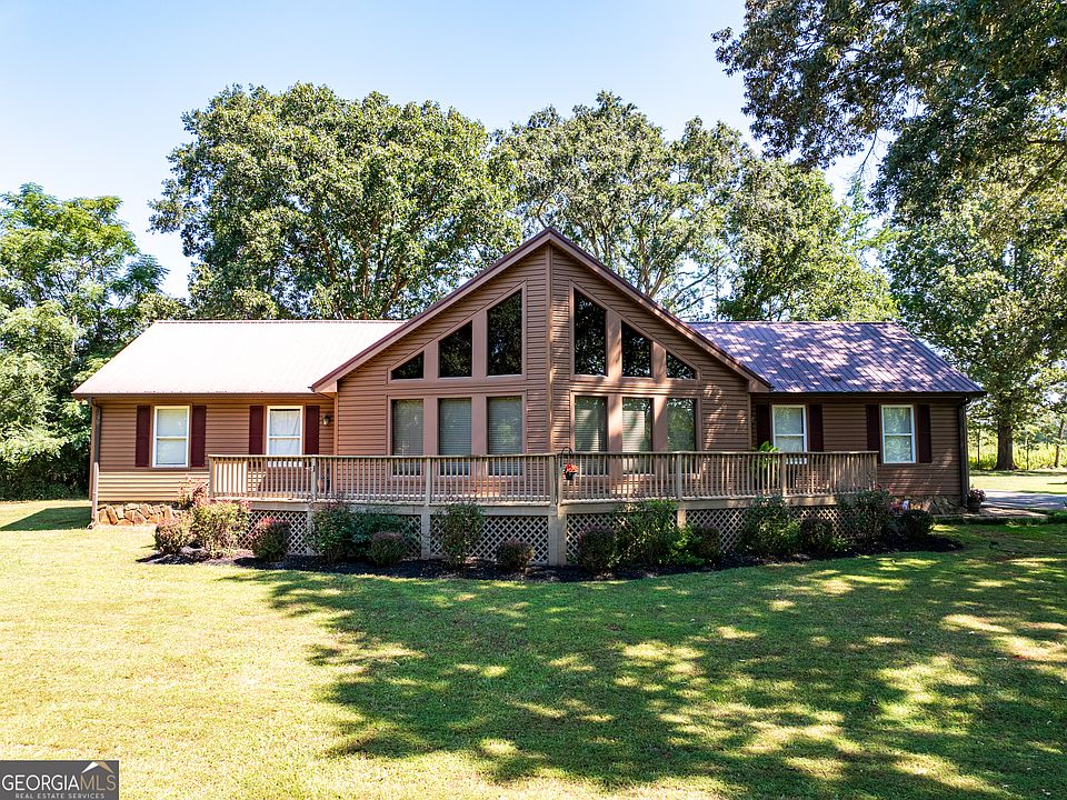 ACCEPTING BACK UP OFFER! Welcome to 2910 Chalybeate Springs Road in Woodland, Talbot County, Georgia. Nestled on a peaceful 2.74-acres, this stunning 2,140-square-foot custom A-frame country residence with a durable metal roof offers the perfect blend of comfort, charm, and functionality. Inside, you'll find three spacious bedrooms and two full bathrooms, all highlighted by beautiful hardwood floors and a dramatic bay of windows that flood the home with natural light. The open-concept design features a warm and inviting living area with a gas-log fireplace, seamlessly flowing into a thoughtfully appointed kitchen with stainless steel appliances, ample cabinetry, and generous counter space. The adjacent dining area offers picturesque views of the surrounding farmland through expansive windows, creating a serene setting for everyday meals or entertaining. The primary suite includes a cozy sitting area and French doors that open to the back deck, while the ensuite bath features double vanities, a separate shower, and a luxurious soaking tub. Two additional guest bedrooms are bright and airy, sharing a well-designed full bath. Step outside to enjoy tranquil mornings or peaceful evenings on the front and back decks. The property also includes a fenced area, ideal for pets or small farm animals, as well as a versatile 18' x36' barn-style man cave equipped with electricity, water, and an outdoor bar-perfect for weekend entertaining. A second outbuilding with electricity provides additional space for storage, a workshop, or a she shed. Conveniently located near shopping, schools, and places of worship, this home also offers easy access to outdoor recreation with F.D. Roosevelt State Park and the renowned Callaway Gardens just a short drive away. Travel is a breeze with Atlanta's Hartsfield-Jackson Airport only 75 minutes away, Columbus just 45 minutes, and Newnan, Peachtree City, and Senoia all within a 50-minute drive.