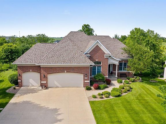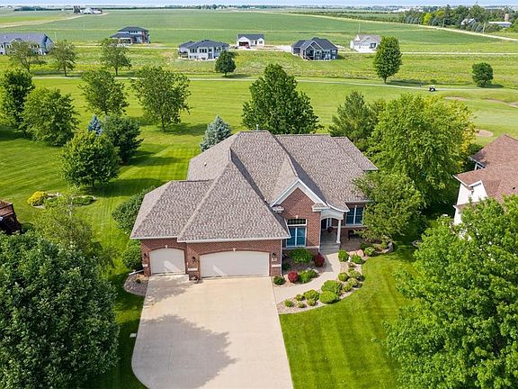 Gorgeous Mooney built custom home loaded with amenities including golf course & pond views with beautiful sunrises & sunsets! Over 3700 square feet, tucked away in a lovely cul-de-sac, you can retreat into this quality constructed walkout ranch located on the seventh hole at Hunter's Ridge. 4/5 bedrooms & 3 full baths on a huge .44 landscaped lot in the heart of a wonderful subdivision. Gracious open floor plan, high ceilings, gourmet kitchen featuring granite counters, Viking gas range, wood floors, walk-in pantry. An impressive great room with stunning gas fireplace, formal dining, main floor den/office/5th bedroom/music room with high coffered ceiling! Main floor laundry, hall cabinets/lockers, French doors leading into huge master suite with large walk-in closet, lovely en-suite! You will be equally wowed by the LL family room with a fabulous custom built wet bar (includes refrigerator & oven) wine cellar, 2nd fireplace, cherry built-ins. 2 big bedrooms & full bath, generous storage. 3+ stall garage, central vac, irrigation system, security & sound systems. This spectacular home, detailed with the finest craftsmanship, is comfortable & inviting. Recent updates include: fresh paint thru-out, new carpeting, lighting, extensive landscaping & refurbished deck in 2020. All appliances are included! You will love living here!