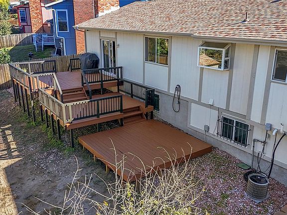 Enjoy the serene mountain views and privacy from the back deck or kitchen and dining windows, framed by mature trees. The backyard includes a large shed, three tiered deck, and an inner wire-fenced dog run. The front yard has been completely xeriscaped with mulch, gravel, water-wise plants, and an arbor, while still retaining the underground sprinkler system.