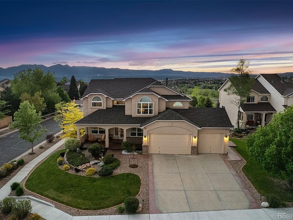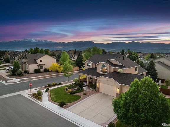 Discover your perfect family sanctuary in this beautifully upgraded 6 bedroom, 4 bath home that is ideally situated near Briargate Parkway with quick access to I-25 and the Powers corridor. Step inside to find beautiful wood floors and a recently upgraded gourmet kitchen equipped with Five Star appliances including a professional 6-burner gas stove, French door oven, vent hood and second French door wall oven. Upgraded cabinets with soft-close hinges, crown moldings, a double sink with hot water tap and center island make this a chef’s delight. The kitchen/dining area flows seamlessly into the family room, which features custom Woodley's quarter sawn oak cabinetry. The main level also has a formal living space, formal dining space, powder room and laundry room, all with easy access to the three season sun room that leads to the large composite deck - both are the perfect place to enjoy morning coffee or evening sunset cocktails. The upper level has a large primary suite with a beautifully updated spa like bath and two walk-in closets. Three additional spacious bedrooms and a full bath complete the upper level. The fully finished walk-out basement level has two more bedrooms, a large second family room, full bath and one of those "must see to believe" features - a large finished workshop located under the deck and additional garage space with roll up garage door that can be accessed via a concrete driveway through a gate at the side of the home. It is ideal for woodworking, car enthusiasts, at home covered storage of that classic car or even a boat! The impeccably landscaped lot provides mountain views and a peaceful oasis. Located near the award winning D20 schools, shopping, restaurants and John Venezia Park with a playground, pickle ball courts, splash bad and picnic areas. This is one of those truly special properties!