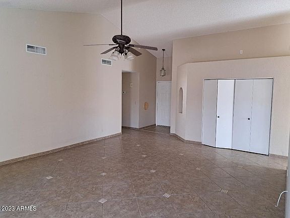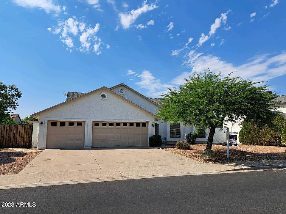 BACK ON THE MARKET! SPACIOUS, OPEN FLOOR PLAN WITH VAULTED CEILINGS AND PLANT SHELVES. SINGLE LEVEL HOME WITH 3 CAR GARAGE, RV GATE AND NO HOA!! LARGE TILE THROUGH OUT WITH CARPET IN 2 SECONDARY BEDROOMS, MASTER BEDROOM HAS WOOD LAMINATE WITH HUGE WALK-IN CLOSET AND MASTER BATH HAS DOUBLE SINKS AND EXIT TO BACKYARD. ALL BEDROOMS AND LR HAVE CEILING FANS, INSIDE LAUNDRY, ADDITIONAL 10X17 ROOM OFF LIVINGROOM WITH BUILT-IN CABS-COULD BE OFFICE OR PRIVATE TV ROOM. NEW WATER HEATER IN 2017, ROOF REPLACED IN 2012 AND HVAC APPROX 2006. GARAGE DOOR OPENER IN 2015, EXT. PAINT 2023. GREAT LOCATION TO 202 RED MOUNTAIN FREEWAY TO SCOTTSDALE, ASU/TEMPE AND SKY HARBOR AIRPORT. DON'T MISS THIS AGGRESSIVELY PRICED HOME IN ''AS-IS'' CONDITION. IT NEEDS UPDATED KITCHEN/BATHS. THIS IS WHY IT'S PRICED SO LO