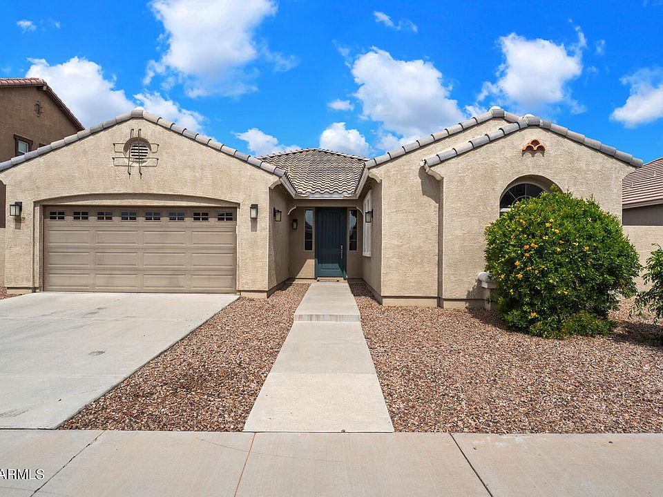 This stunning 4-bedroom, 2.5-bath home is situated in a well-kept gated community in North Mesa. It boasts an open-concept design with a spacious family/great room and kitchen area. The builder has added foam insulation to the exterior walls. The home features tile flooring throughout, 42-inch upgraded cabinets, and granite countertops. A large walk-in pantry and a 3-car tandem garage add to the convenience. Ceiling fans are installed in all rooms. The great room is enhanced by an upgraded double sliding Arcadia door, and the property is complemented by desert landscaping. Its location offers quick access to the 202 freeway, facilitating easy travel.