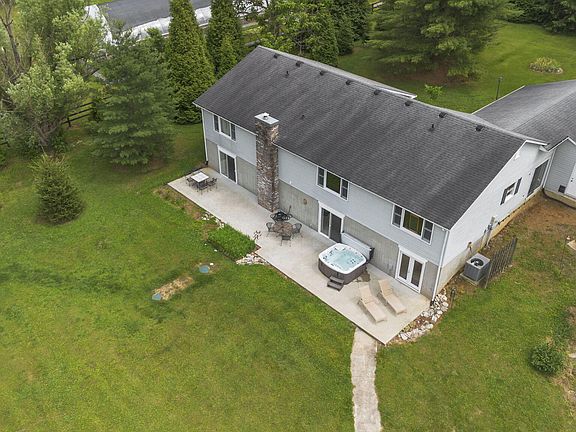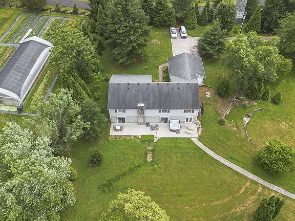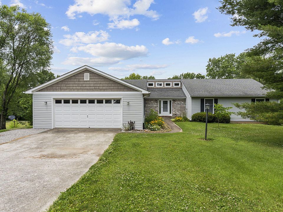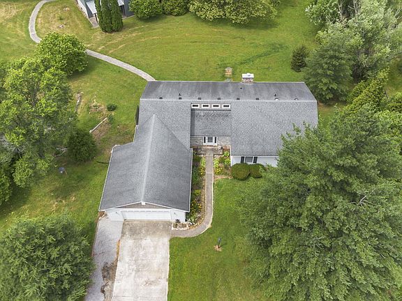 A true slice of Kentucky paradise! Tons of living space with 558 ft. of road frontage while situated on a beautiful 5 acres. The home is spacious and the views from any window can't be beat! The great room offers vaulted ceilings, custom windows that provide lots of natural light, and scenic views of the land. 1,500 sqft. of new french oak engineered hardwood flooring just installed on first floor. A fully finished walkout basement offers a fourth bedroom, a third full bathroom, a second living room with a functional wood burning stove, a large utility/storage space, and easy access to the hot tub on the back patio. The extra large 1,325 sqft. detached building/workshop sits on a slab foundation and has a water line and electric run to it. Need a break from work? Take a peaceful stroll on your own personal hiking trail across the backyard ridgeline. This property offers a genuine arboretum feel...don't miss it!
