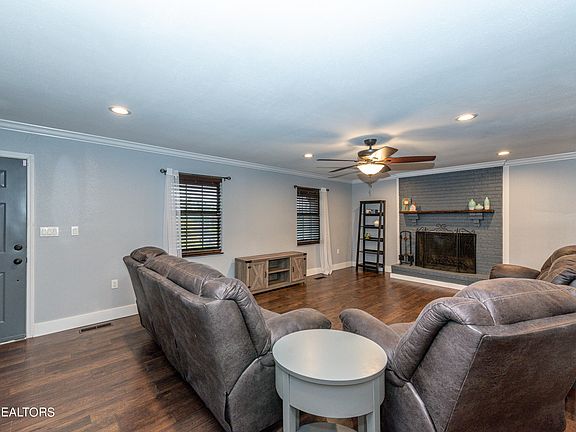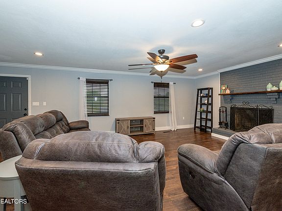 Updated, all brick Rancher in Louisville! This home features an open floor plan with laminate hardwood flooring and crown molding through most of the home. The large living room features a brick, wood burning Fireplace. Kitchen has large island with bar seating, granite countertops, stainless appliances and pantry cabinet. Spacious breakfast room with glass doors exiting to a deck which is great for entertaining. Home offers three bedrooms with spacious closets. The primary suite offers not one but TWO large walk-in closets! Updated Primary bath features double vanity and tile walk in shower. Hall bath has also been updated. Large Laundry Closet with sliding barn doors is conveniently located near the bedrooms. Single car garage with man door leading to the backyard offers convenience for working around the home. Lots of storage and endless possibilities with storage shed AND unique 300 sq. ft building (not included in finished sq. ft) which would be ideal for a hobbyist or home school classroom . Building was once used as a music studio and is wired and has mini split however it is not currently with power but could easily be reconnected. Convenient to Maryville and Knoxville. A must see! Home Warranty offered with acceptable offer.