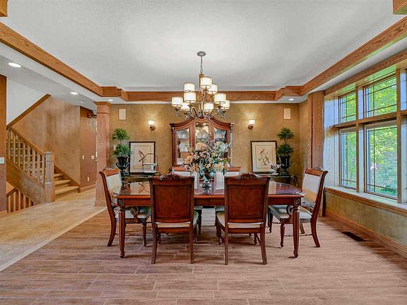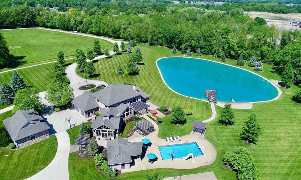 It had us as at hello. Driving up a winding McComb Road the anticipation was too much. And then...nestled on 20 spectacular acres sits a masterfully designed and constructed 8000+ SF, 5 bedroom, 7-bath, 6-car estate with a 1 acre pond w/dock + beach, a heated swimming pool + cabana, charming private log cabin w/loft, 1-mile walking path, playground, and indoor sports court (tucked inside one of the all-stone garages!). The home's rustic yet exquisite craftsmanship boasts timeless architectural details, high-end finishes, and finely crafted millwork throughout, creating a true luxury estate in the coveted Northwest Allen County school district. Your breath is taken away as you enter, featuring an expansive foyer, gracious dining room, double-height living room, stone fireplace and French door access to a pergola-covered patio overlooking the backyard paradise. Light, bright and designed for family living and entertaining, the superbly crafted kitchen and hearth room feature wooden beam and ceiling details, a built-in dining area with banquette (more wood ceiling!), gourmet appliances, high-end finishes and new flooring, large eat-at island, and direct access to the Frank-Souder designed 850 sq. ft. grill room. Hours will be spent entertaining and relaxing in this masterpiece of a room where function meets fabulous, complete with interior stone, incredible slate floor, rich wood beams, fireplace, granite galore, gourmet grill and bar, and views/access to pool deck.The main floor master features wooden beams, a private patio, recently renovated custom bath w/tumbled basket-weave marble and gracious walk-in closet. Upstairs, three en-suite freshly painted and carpeted bedrooms and loft create a perfect oasis for family and guests. The walkout lower level is TO-DIE-FOR w/Irish pub details, built-in booths, tin-ceiling, exquisitely designed bar, state-of-the-art home theatre, fitness studio, play room, & guest suite. Live life to the max on this jaw-dropping 20-acre estate. The landscape, beach, pergolas and out-buildings (yes, the log cabin is ALL WOOD w/kitchenette, loft and bath) leave no stone unturned (literally) in design, functionality and fun. The 6-car epoxy-floored garages are host to basketball teams, fine autos, all-terrain vehicles and storage galore.