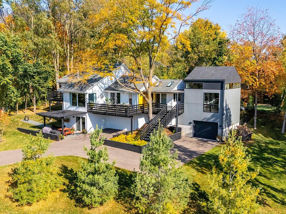 Multiple offers received. All offers must be submitted by Monday Nov 11th 3:00 PM for seller review. Mid-Century Modern Design with Amazing Lake View! Welcome to your dream home overlooking Medicine Lake! This residence offers year-round enjoyment of the lake with spectacular views, steps away from walks and bike rides around the lake, and endless spaces for entertaining guests – inside and out! The recent transformation adds clean lines, high-end finishes, and open floor plan which offer the perfect blend of comfort and style. A 2018 custom renovation delivers an award-winning, modern kitchen perfect for culinary enthusiasts and entertainers alike. Open to the kitchen is a cozy yet modern living room with a custom fireplace, and stylish, durable new flooring throughout. The addition of a light filled, lake-view studio, with its own heating/cooling and half bath makes working from home a magical experience. The studio space could easily host long term guests with no shared walls and its own private entrance. High-end finishes like custom steel railings, luxury lighting, and built-in features add warmth, character and storage solutions throughout. Relax and unwind in the luxurious primary bath, designed with custom cabinetry, seamless glass shower, and heated floors. Outdoor spaces were thoughtfully reimagined with a front yard patio, pergola, mature trees for privacy, a water management system, and low-maintenance (no-mow grass) landscaping. The oversized maintenance-free Trex deck, is ideal for alfresco dining with an unmatched sunset view over Medicine Lake. Convenient laundry in the primary walk-in closet, and plenty of space for pets and children in the spacious yard, this home combines functional upgrades with laid-back lake view charm. Quick access to downtown Minneapolis and nearby shopping completes the picture of an inviting, vibrant lifestyle waiting just for you. Don’t miss this opportunity to live your best life in urban style near the lake!