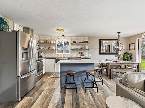 Super cute updated one level home with open floor plan. Newly updated kitchen & bathrooms, plus new luxury vinyl plank flooring throughout. Quartz counter Island in kitchen with farmhouse sink & eating bar, 5 burner glass cooktop & a deep convection oven, stainless 3 door refrigerator & pantry. French doors from dining lead to the concrete patio and a large fenced backyard with timed sprinklers programed to your smart phone. Lg master suite with walk-in closet and designer cabinet. Efficient heat pump for heating and cooling, oversized 2 car garage with opener and lg RV parking area on side of home. This .24 acre lot is located in a Cul-de-sac amongst nice homes & great neighbors, per the owners. Hurry on this one!! It's a great home & great location.
