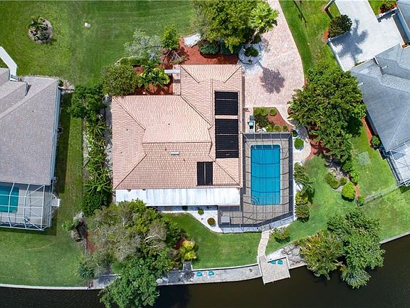 Beautiful Gulf Access Home with 150 ft of water frontage, dock and wide Intersecting Canal Views. This sprawling home has it all. Updated kitchen and baths, granite, tile floors throughout, french doors, newer windows, pool bath, wet bar and office/den area. Vast pavered outdoor living space includes an expansive pool, outdoor shower, dining and lounging areas. The over-sized 3 lot grounds are well manicured with beautiful foliage and an assortment of fruit trees. Your piece of paradise awaits you.