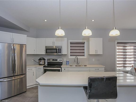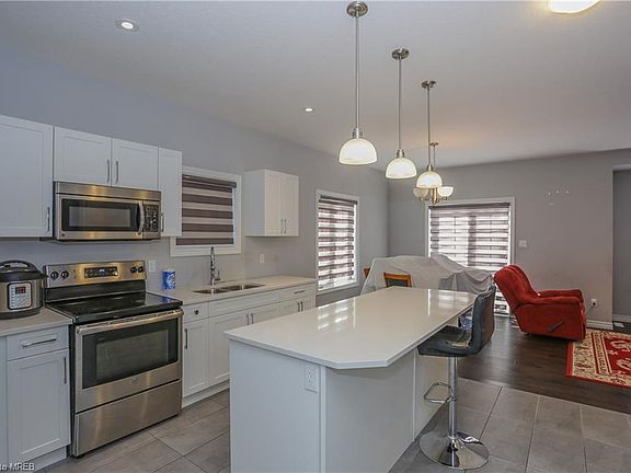 End Unit Northwest London ,Open concept ,9 ft ceiling large main floor area with engineered flooring and tile floors. Bright open living dining area With lots of natural light, kitchen featuring quartz counter, breakfast bar,stainless steel Kitchen Appliances, Sliding door to outside patio, Covered front porch,Single garage, master with a walk in closet & ensuite .Large lower level with three large windows for future living area.