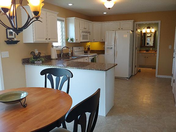 Buyers with agents welcome. Asking price reduced to $219,900. Pride in ownership shows throughout this well-kept and maintained 3 bedroom, 2 full bath, story and a half house on 0.39 acres. The house is down the street from Red Hawk Golf Course, minutes from shopping in a growing area. The kitchen has quartz countertops, white cabinets, pantry and laminate flooring. Kitchen appliances stay with the home. The master bedroom is located on the main floor with connecting door to the full bath. The main bath has hook ups for laundry. The upper level includes two large bedrooms and a full bath. The lower level features a beautiful stack stone gas fireplace, built in cabinets, laundry room, third bath waiting to be finished and storage area. Outside is a stone patio with sitting wall built by RJ Wolfe in an attractive landscaped fenced area. UPDATES: 2018 main bath 2017 roof, garbage disposal 2016 quartz countertop w/ stainless steel sink, sump pump 2013 basement finished, furnace blower motor 2011 paver patio w/ seat bench 2003 wood privacy fence