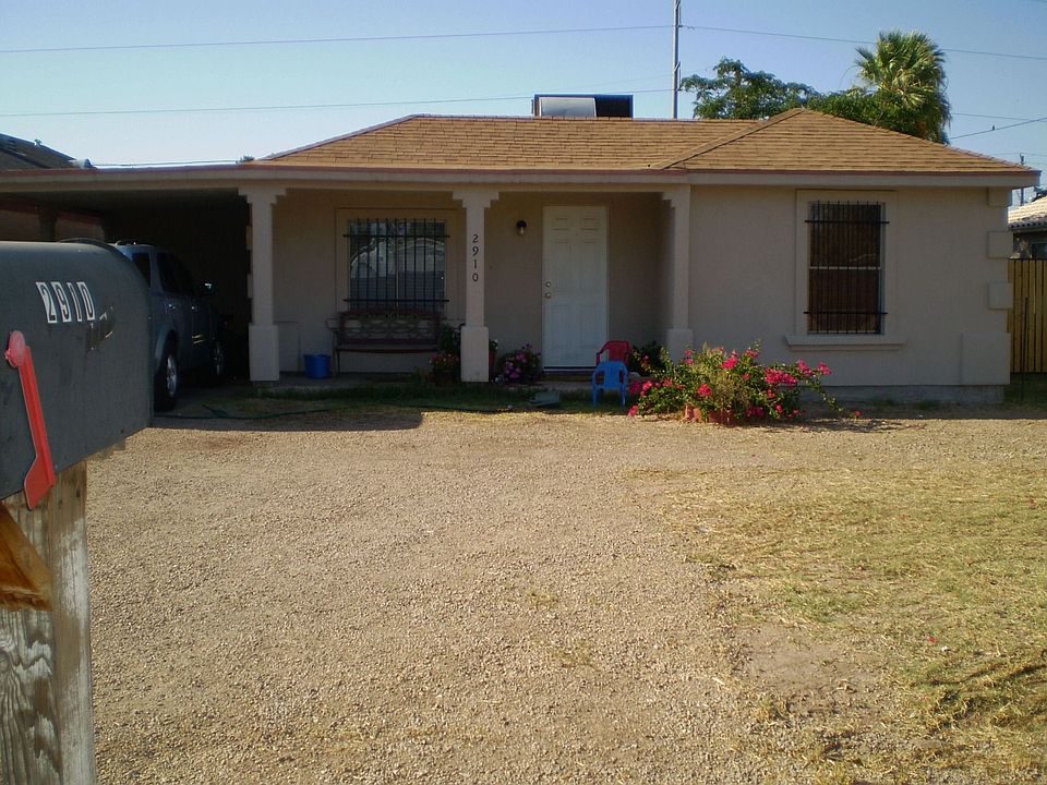 Listing agent: Mario Romero, Call 602-252-4191 for information. A covered front porch welcomes you to this charming Franklin Village ranch home. The living room features 16 inch tile floor, ceiling fan and a large window facing the front yard. The eat-in kitchen also has 16 inch tile on the floor, numerous cabinets, a stove and an over-the-sink window with a backyard view. Both bedrooms have two large windows, carpeting and a ceiling fan. Outside the home is a carport, and a large backyard with block and chain link fence. Call our office at 602-252-4191 to arrange your personal showing. .............................................................Directions: From Thomas Rd. travel south on 35th Ave. to Encanto, east to 29th Ave, south to Cypress and west to the home at 2910 W. Cypress. .............................................................List Of Features: 1945 Ranch ~~ 2 Bedrooms ~~ 1 Bath ~~ 721 Sq. Ft. ~~ Range/Oven ~~ Washer/Dryer Hook-up ~~ Eat-In Kitchen ~~ Family Room ~~ Composition Shingle Roof ~~ Block/Chain Link Fence ~~ Refrigeration ~~ Electric Heat ~~ Cable TV Available ~~ Ceiling Fans ~~ 1-Car Carport ~~ Carpet/Tile Flooring