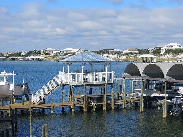 Come and enjoy the beautiful views this condo has to offer! Views of Ole River and views of the Gulf of Mexico. This is a family oriented complex with boat slips available to our guest. Don't forget to bring your fishing poles, you can fish right off the pier and also enjoy the beautiful sunrise and sunsets from the gazebo. Public beach access within a 5 minute walk and boat launch close by. The kitchen is fully stocked with everything you need, living room has reclining sofa and chair, rocking chair also has a large balcony with table and chairs to enjoy these beautiful views. The master bedroom offers a king size bed, bath and private balcony. Balconies overlook the complex pool! **MUST BE 25 TO RESERVE THIS PROPERTY** Jubilee Landing Unit 107 offers 2 bedroom and 2 bath condo. Featuring oversized balconies with views of Ole River and the Gulf of Mexico. Boats slips are available to our guest on a first come first serve basis. This complex has a covered picnic area and also BBQ grill area. Fishing pier has a lovely gazebo to enjoy and a large outdoor pool. This complex is very family oriented. Public beach access is within walking distance and public boat launch is located close by. Docks-All persons using the docks, do so at their own risk. Jubilee Landing and Aqua Vacations & Sales Group is not responsible for any accident or injury in connection with use of the docks; nor the loss of any personal property. The covered boat stalls are private property and off limits to everyone except their owners. Docking is by permit only in the uncovered and unmarked areas to renters, guest or visitors at a charge of $10.00 per day docking fee which includes water and electrical. Our BBQ area is just off to the side of the swimming pool and provides plenty of seating while you fire up the charcoal! Across the street you will find a fairly hidden path that leads you to your quiet undeveloped Gulf beach, Jubilee has deeded access to this area allowing you to