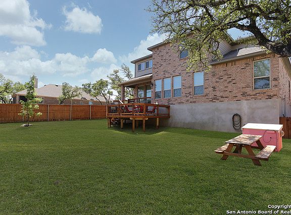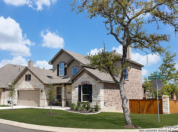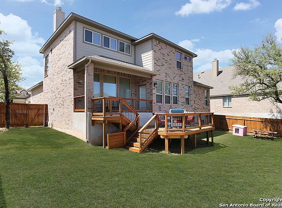 Meticulous 5 Bedroom, 4 Full Bath in the popular Front Gate of Fair Oaks Ranch! Pride of ownership is evident throughout this upgraded home with gorgeous wood flooring, stone fireplace, elegant formal dining, gourmet kitchen with gas cooking and double ovens, recent chandeliers/modern fixtures, extended stained deck with sitting bar, corner lush lot with mature trees and stained fence. Second bedroom down with full bath for a guest suite. Generous secondary bedrooms with 2 more full baths up, walk-in closets and large game room. Spotless Garage with recent Epoxy and built-in storage racks, keyless entry and led lighting. REME HALO in-duct purifier system installed. A must see!