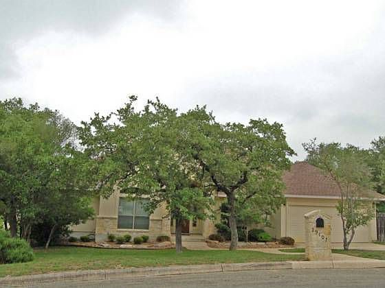 Quality built single story on quiet treed culdesac lot. Outstanding open floor plan with high ceilings, rock fireplace, big island kitchen with walk-in pantry, solid surface counters, and tile floors. Elegant private master with luxurious large bath. Large secondary bedrooms have Jack-n-Jill bath. Wonderful covered patio and mature oak treed yard. An easy walk to the Fair Oaks Ranch Country club.