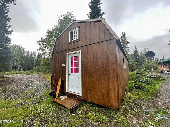 Imagine what you can do on a peaceful 1.27 acre lot with 2 dwellings. The Main home is1390sf made up of an original homestead cabin & an unfinished 2 story addition. The 2nd building is 32'x14' dry cabin built in 2020 with 2 lofts, all partially finished. End of the road & private. Selling AS-IS. No CCRs. Woodstove is main heat source with Toyo backup.