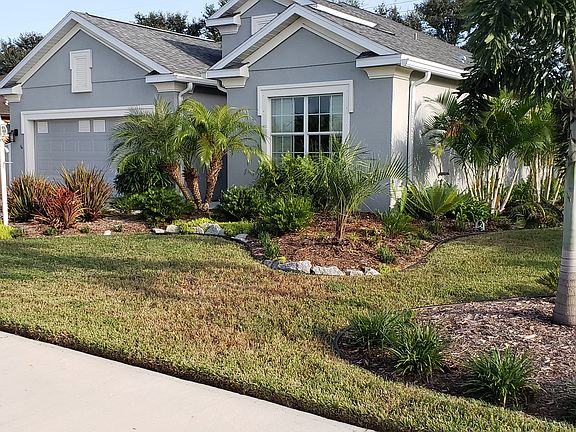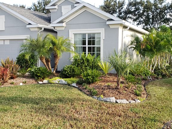 This 5 year young Neal Home, 3/2/2 with 1569 sq ft and located in Sugar Mill Lakes, just minutes from I-75, I-275, Tampa, St Pete, Sarasota, Bradenton, Airports, Hospitals, Shopping, Schools and the Pristine beaches on the Gulf of Mexico. For sale by owner 248 872-9569 . Upgraded features include: Large 20x20 garage with 5x9 ft work area, and this garage fits a full size truck! Epoxied floor, insulation added to attic and garage door, custom ceiling perimeter shelving all around. Side garage door put in and garage even has a Mitsubishi air conditioner for those hot days when you want to work in the garage and stay cool. Whole house attic fan installed. Driveway widened to ease opening your car doors. Professionally landscaped front yard, that has little grass to cut. Fenced yard. 9foot sliding door opens this home to the outdoors, as you walk out into the attached 13x9 ft lanai connected to a new 20x20 ft screened house with lighting all around for your night time entertaining. The yard surrounding this screened house is a tropical low maintenance paradise with paths and even a sandy beach like area with Adirondack chairs for your sunning pleasure. No grass cutting needed. Drip irrigation and sprinkler system included. 10x12 ft. shed built nestled in the yard that mimics the look of the house. This is a great space for a workshop, for your motorcycle, vintage car, golf cart or even a He Shed or She Shed! Other additions; Coffered Ceiling with 2 Tone Painting; Neutral paint colors, added decorative touch, lighting above and below the kitchen cabinets and even inside the glass accent cabinets. Solatube added in the kitchen letting the sunshine in. Corian counters in kitchen and bathrooms. Updated pendant lighting above counter height bar, updated dining table light. Tile throughout NO carpet. Laundry room inside off the garage with matching Whirlpool Commercial washer and dryer. Added cabinetry above washer and dryer for extra storage. Two bedrooms at the front of the house with full bathroom between them. Owners master bedroom at the back of the house with his and hers large walk in closets, extra shelving overhead for added storage. Large bright bathroom and Roman style walk in shower. Enclosed toilet room for your privacy. Upgraded quiet bathroom fans. Decorative barn door to close when showering. Ceiling fans in each room. Appliances including Washer and Dryer, Refrigerator, Microwave, Stove, Dishwasher and Disposal. All Window coverings, Ceiling Fans, No CDD and a very low HOA fee. This is a Must See Home! Call now to view this Beautiful home. For Sale By Owner Built Oct 2014. Neil's Bay Breeze Model home ¦ What we love about this home ..... "We love the tropical backyard with pathways, one of which takes you to a sandy beach like setting with Adirondack chairs and an umbrella for your relaxing sunning pleasure. The backyard has NO GRASS TO CUT!! The front yard even has little grass to cut. The plants are watered using the drip irrigation system, as well as the sprinkler system. Outdoor entertaining is easy with the added 20x20ft lanai with lighting. "