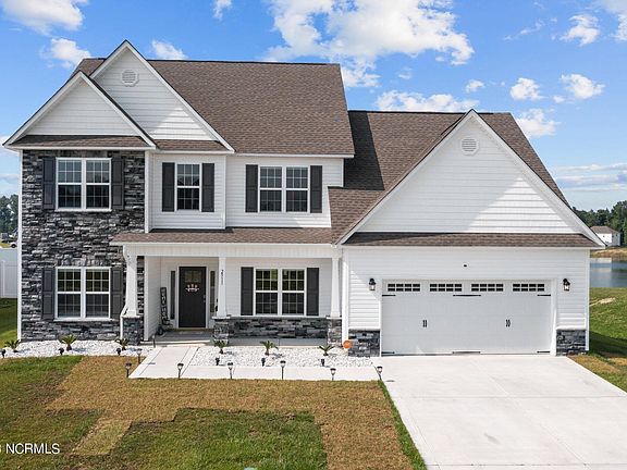 Lakeside Retreat: New Bern Exquisite Gem Awaits! An extraordinary opportunity has emerged for you to claim a stunning Lakeside Retreat in New Bern. This remarkable 4 Bed, 2.5 Bath Home, boasting a vast 3,253 sqft of living space, including a magnificent bonus room that can also be used as a fifth bedroom. Prepare to be captivated by the breathtaking Lake Views and immerse yourself in a lifestyle of unrivaled beauty. Highlighted Features: Prime Location: Enjoy the privilege of owning one of the biggest lots of Phase 1 at 0.43 acre, providing you exclusive lake access and the opportunity to live amidst nature's wonders. Unforgettable Lake Views: Indulge in the sheer beauty of the mesmerizing Lake Views, creating a serene ambiance that will leave you in awe. Spacious Living: This home offers abundant space to unwind and create lasting memories. Elegant Upgrades: Experience the exquisite elegance with pristine White Cultured Marble countertops, a custom backsplash, stunning LVP flooring, breathtaking light fixtures, upgraded fans, and exquisite details that will leave you speechless. Versatile Office: Keep as office or crafts room.