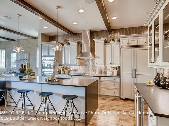 This lovely Low Maintenance Villa in the one of a kind community of Calmante offers great biking and hiking trails, close proximity to shops, restaurants and the Omni Interlocken Resort Golf Club. Enjoy entertaining in the open floorplan concept that features a main floor Master Bedroom with 5 piece master bathroom, Main Floor Study and Dining Room as well as an open Entertainer's Kitchen. Lovely finishes include quartz kitchen countertops, hardwood floors in main living area and kitchen, finished lower level with wet bar, rec room and 9' ceilings. Design options still available including a 4th lower level bedroom with private bath. Get cozy by the fireplace or enjoy a beautiful Colorado evening on your covered deck. This home will go fast, ready in Fall 2019! So hurry in to see this luxury home in the stunning community of Calmante. Photos of Model.