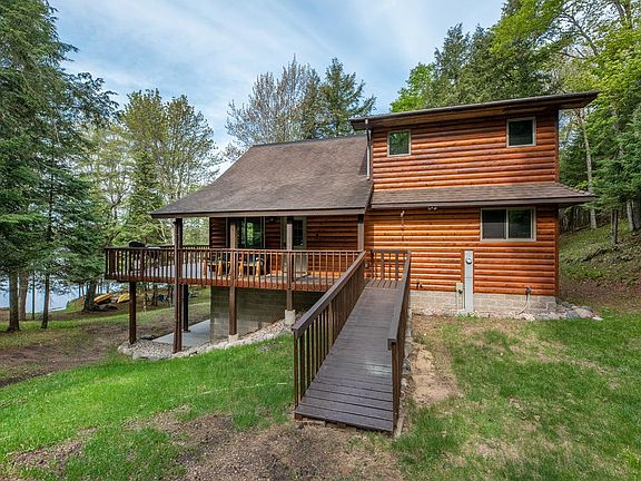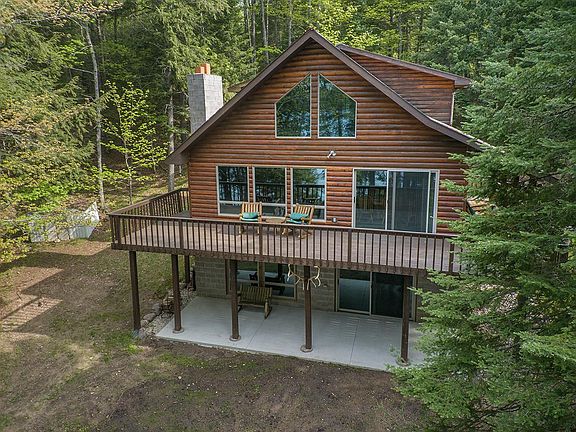 “Dinner Lake Delight"...This 4 bedroom/3 full bathroom home sits on 4.78 acres with 151 feet of frontage on pristine Dinner Lake in Watersmeet, MI. The 110-acre lake offers some of the best bluegill fishing in the Northwoods and is known for the quality and clarity of its water. The 2500+ sq. ft. home features an open concept kitchen/dining room/living room with tongue and groove paneling throughout, 2 wood fireplaces, a fully finished walk out basement, and a big wrap-around deck for star gazing, lake viewing, grilling, or just plain ol' relaxing. The sandy shoreline with a gradual drop makes it a great swimming area for the young ones and old ones alike. All the appliances are included, and furnishings are negotiable. Everything is well maintained and nicely landscaped. Conveniently, this property is only 10 minutes from Land O’ Lakes, WI and all the amenities it has to offer. Make this your "Up North" retreat today!!