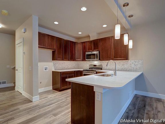 Minutes to downtown Anchorage without the congestion!Ride your bike or walk to the Coastal Trail and Westchester Lagoon in this hip, up and coming area.All bedrooms up with private master bath, open living/kitchen/dining downstairs with 9' ceilings, oversized windows, 42'' upper cabinets. Executive living with quartz countertops, tile backsplash, high end laminate flooring and large fenceable yard