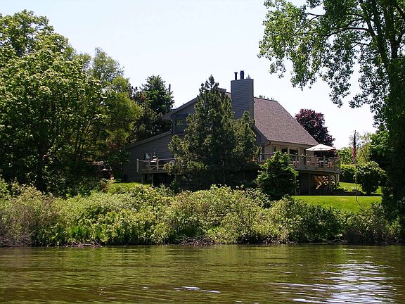 Hillside Cedar, 3 finished levels, walk out lower, 2 fireplaces, Custom oak Wet bar has Copper top. Neighborhood Description Private 840 Acre Lake for year round vacation living. Great boating, fishing, sailing....snowmobile on Lake in Winter..All 1 hour from Chicago