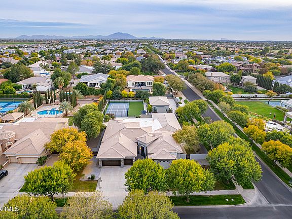 The most desired property in Morrison Ranch, offering unrivaled luxury and exceptional design on nearly an acre lot, with casita, separate side-entrance detached garage with electronic gate, tennis court, and so much more! Totally remodeled in 2017 and custom-designed 6,241 sq. ft. estate features two primary suites, four secondary bedrooms with en-suite bathrooms, a massive game room and a separate casita perfect for a gym, office, or multi-family living. The chef's kitchen, with custom beams, is ideal for entertaining. This home can park 12 cars with additional RV and boat parking options. With landscaped grounds, a heated pool, spa, private tennis court, and luxurious custom details like electric blinds, this home is truly one-of-a-kind.