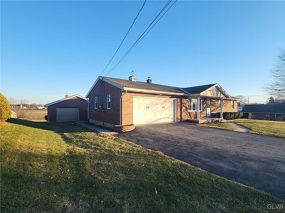 Tucked off the main road within minutes of Lehigh Hills Shopping Center and major routes is where this Classic BRICK RANCH is located in NORTHWESTERN SCHOOL DISTRICT. The living room offers lots of natural light and a wall AC unit and is open to the dining area. The eat-in kitchen has wood cabinetry and vinyl flooring and is adjacent to the dining area with large windows overlooking the backyard. THREE bedrooms, including a primary bedroom and a bathroom with a tiled shower and floors. There is also a full bath with a tub, tile surround, and tile floors. The unfinished 34x25 BASEMENT is accessed through the garage, is HEATED, has a shower, EXTERIOR ENTRANCE to the backyard, and is ideal for storage or conversion. An additional 17x10 HEATED SUNROOM is accessed through the garage with a partial brick wall, abundant windows overlooking the backyard, and a sliding door to the side yard. Perfect additional space for a home office or to suit your needs. The DETACHED 25x22 GARAGE is HEATED with a wood stove, has a workbench, and is ready to host your hobby or store an extra car. Need more space, there is another attached 10x19 storage room with a HALF BATH at the rear of the property. Additional features include HARDWOOD FLOORS under the carpeting, oil heat with two oil tanks, an ATTACHED TWO CAR GARAGE with storage above, a newer steel roof on the detached garage, and well and septic. This home has been well cared for and awaits your personal touches to make it your home.