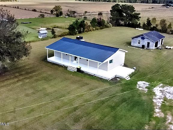 If you are searching for some peace and solitude this homestead is waiting for you. Surrounded by approximately 2 acres of cleared land, the home greets you with a rocking chair front porch and continues to enchant inside with an open floor plan showcasing wood laminate flooring in the main living areas. The kitchen is equipped with abundant bright white cabinetry and appliances, butcher block countertops with subway tile backsplash and a farm sink with a pull-down faucet. The large dining area is accented by a shiplap wall, exquisite chandelier and can accommodate a table for large family gatherings. An archway leads to the spacious living room which showcases a barn door to the laundry room. The primary suite is carpeted with a walk-in closet and leads to a gorgeous bath highlighting a quartz vanity with dual vessel sinks. There is an additional bedroom and a half bath. Also on the property is a barn for use as a 2-car garage or large workshop. Plenty of extra parking on site for your boat or RV. Overall a pretty spectacular setting and no HOA fees!