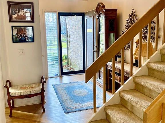 Spacious 1.5 story villa on a quiet cut-de-sac in the sought after neighborhood of Glaston Oaks. This home features 3 bedrooms, 3 bathrooms, den, great room, dining room and kitchen. The main floor features a large primary suite with a large walk in closet, great room/formal dining area with fabulous light filled windows and a gas fireplace. The eat in kitchen has a large bay window and ample counter space. The second floor has 2 bedrooms, a bathroom and a loft with skylights that overlooks the living and dining areas below. The basement is the perfect location for a home theater.
