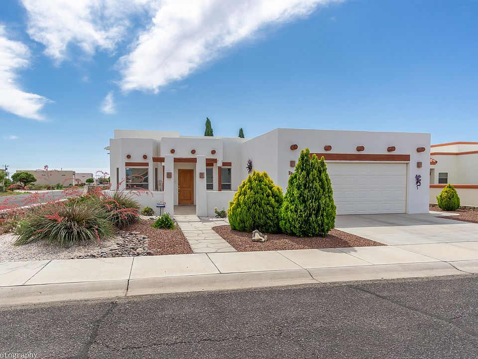 Don't miss out on this impeccably maintained 1662 sq. ft, 2 bed 2 bath home, in a beautiful 55+community, sitting on a corner lot. The home also includes a built-in office, as well as an additional room currently used for exercising. Large kitchen with tile counter tops, eat in area as well as a formal dining area. Formal dining area can be used for a library, TV Room or craft room. Laminate floors in the bedrooms, and tile throughout the rest of the house. Living room has a beautiful kiva fireplace (gas). Beautifully tiled outside patio front and back. House was repainted outside 3yrs ago, roof resurfaced 5yrs ago, hard wired for alarm system. Home comes fully furnished. Don't miss out, call today to schedule an appointment.