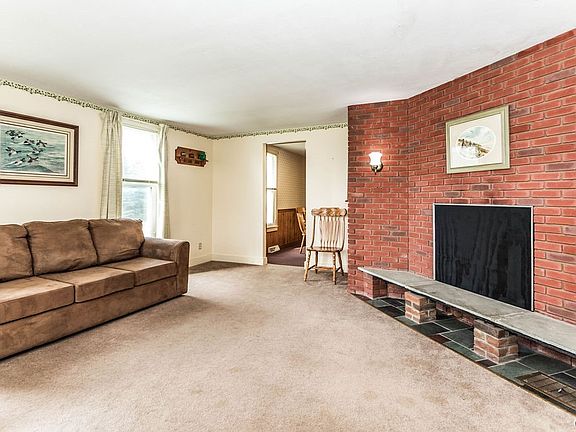 large airy family room (pool table stays) which includes one of two fireplaces in the home. Slider