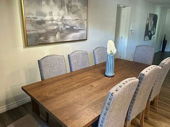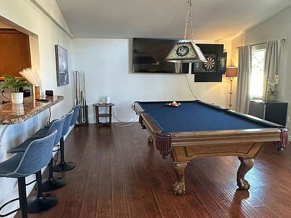 Fully furnished 4 bedroom home with 3 king size bedrooms and a queen bedroom. Open kitchen with island, dining room and living room, large family room with pool table, darts. Huge wall gated backyard with a large hot tub.