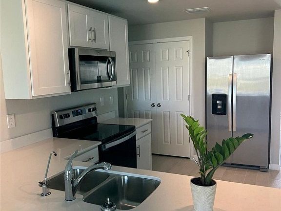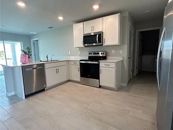 Discover this property an inviting 1,389 sq. ft. rental home in NW Cape Coral, near Nelson Rd and Kismet Pkwy. This beautifully designed home features white designer kitchen cabinets, quartz countertops, stainless steel appliances, and plank tile flooring throughout, except in the cozy carpeted bedrooms. Enjoy a covered lanai, paver driveway, full irrigation system, and a smart home package for modern convenience. With stylish finishes and a prime location, this home is the perfect rental opportunity!