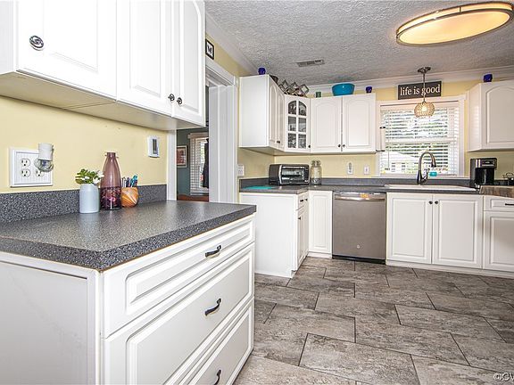 Don’t miss your chance to own this charming, 3-bedroom, 2-bath, bungalow in the sought after neighborhood of Lakeside. Home has been completely remodeled with high-end amenities including heated tile floors in the kitchen and both bathrooms to keep your tootsies warm on cold days. Renovated kitchen includes new cabinets, counters, fixtures, & black stainless appliances. There is a separate dining area and a large family room with an updated electric fireplace. The primary bedroom is vaulted with a walk-in closet and full ensuite bath including double vanity and custom tiled step-in shower. There are two other bedrooms with original hardwood floors (refinished, of course!) – both currently being used as office space. Speaking of office space … the floor plan works really well for a home-based business since friends can use the side door leading to the kitchen while clients can come straight in the front door. The outside area is just as stellar with a large 11x17 screened porch, 10x20 covered paver patio, raised deck with generous seating area, and a SALT WATER pool for hot summer days. Did I mention there is also an oversized detached garage and the whole place is privacy fenced?