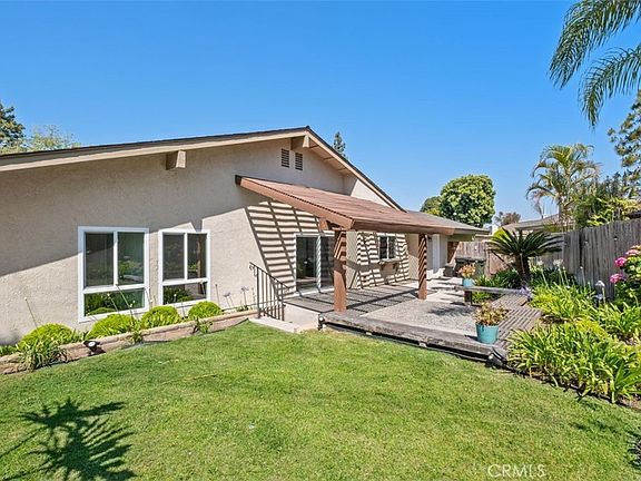 REDUCED TO SELL NOW! Look no further! This darling ready-to-move-in 3 bedroom 2 bathroom one story home has been updated and remodeled and is in a great location in Orchard Lane, a small community of only 28 homes. Close to Craig Regional Park with sports fields and playgrounds, Brea Mall, great restaurants, Cal State Fullerton and more, this home is attached on only one side and features an extra-large wraparound yard with concrete and aggregate decking, a large patio trellis, built-in seating, and a large grassy area, all for a true sense of indoor-outdoor living. The house has brand new white double-paned windows and sliding glass doors, brand new interior and exterior light fixtures including switches and outlets, newer white paint, neutral laminate and tile flooring, and plantation shutters. The kitchen and both bathrooms have freshly painted cabinets with granite countertops and backsplashes and brand new dark knobs and hinges. The living room has a fireplace, cathedral ceiling and a sliding door to the front patio while the dining room has a brand new dark chandelier. The sunny kitchen has a stainless steel sink with brand new Euro-style faucet, a pantry, a breakfast bar, a brand new GE 5 burner stainless steel range as well as a GE stainless steel dishwasher and GE stainless steel microwave and opens to the family room with sliding glass door out to the yard. The spacious primary bedroom looks out to a private patio and has double doors, a cathedral ceiling along with two closets with brand new closet doors. The primary bathroom has a brand new shower surround with glass doors. The two good-sized secondary bedrooms share a bathroom with a tub/shower combination. The laundry area is in the two-car garage which also features a roll-up garage door with windows and an epoxy floor. Other brand new features include new dark door hardware inside and out and Kohler low-flow toilets and newer features include HVAC system including ducting. Orchard Lanes is a wonderful community with a pool, a spa, a tennis court, and the dues cover water, sewer, trash, gate, exterior paint, roof, some portion of termite work/fumigation, and master insurance. The HOA requires that two cars be parked in the garage. No Mello-Roos. Buyer to cooperate with seller's 1031 exchange at no cost to buyer.