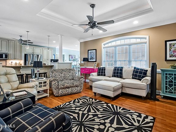 Impeccably built and thoughtfully designed, this home offers a rare combination of quality craftsmanship and high-end features. Foam insulation throughout the attic and walls, along with a sealed crawl space, ensures energy efficiency year-round. Exterior highlights include a fully irrigated lawn with sod, a backyard putting green, wraparound porches, a covered porch with stamped concrete, and extensive landscaping featuring five mature palm trees, red brick bed borders, white rock accents, and landscape lighting.