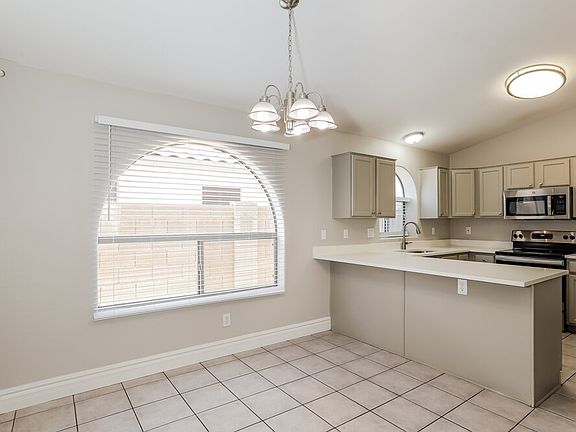 Please note, our homes are available on a first-come, first-serve basis and are not reserved until the holding fee agreement is signed and the holding fee is paid by the primary applicant. This home features Progress Smart Home - Progress Residential's smart home app, which allows you to control the home securely from any of your devices. This home is priced to rent and won't be around for long. Apply now, while we make this home ready for you, or call to arrange a meeting with your local Progress Residential leasing specialist today. Fall in love with this Mesa rental home with three bedrooms and two bathrooms inside 1,401 square feet of living space. Enter the living room, cool off beneath the ceiling fan light hanging from the vaulted ceiling, and step through its sliding glass doors to relax in the covered patio and backyard. Enjoy the spaciousness of the main bedroom and the privacy of its en suite bath's walk-in shower, dual sinks, and walk-in closet. When it's time to cook, you'll appreciate the cabinet and counter space of the U-shaped kitchen and its double sink and handy gooseneck faucet. Serve meals beneath an elegant chandelier in the light streaming through the dining room's arched window. Apply for this move-in ready home today.