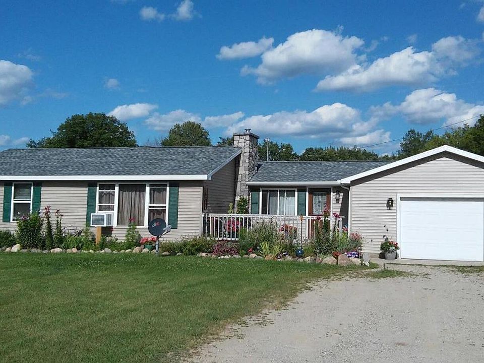 Exceptionally well maintained ranch home with many upgrades in recent years, including new 30 year roof, vinyl siding, Michigan stone fireplace, new chimney, flooring in kitchen and entry/dining/laundry room, bathtub fixtures, new metal doors, LR carpeting. Nature lovers delight, quiet setting, and beautiful landscaping featuring several large flower gardens and a vegetable garden area. Ready to move into with no work!