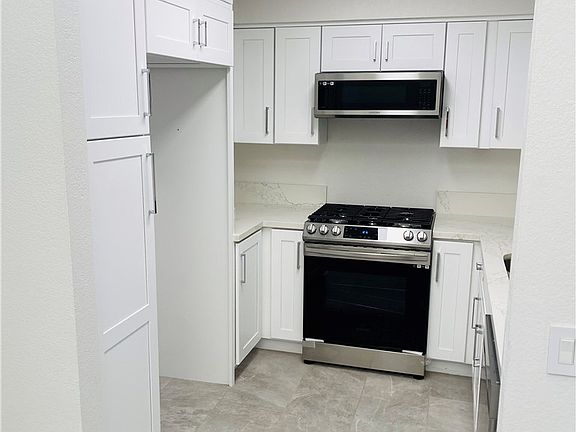 Step into a highly desirable gourmet galley kitchen featuring new layout, cabinets, quartz countertops, new dishwasher, microwave, and new range, LED lighting, upgraded electrical and new plumbing fixtures.