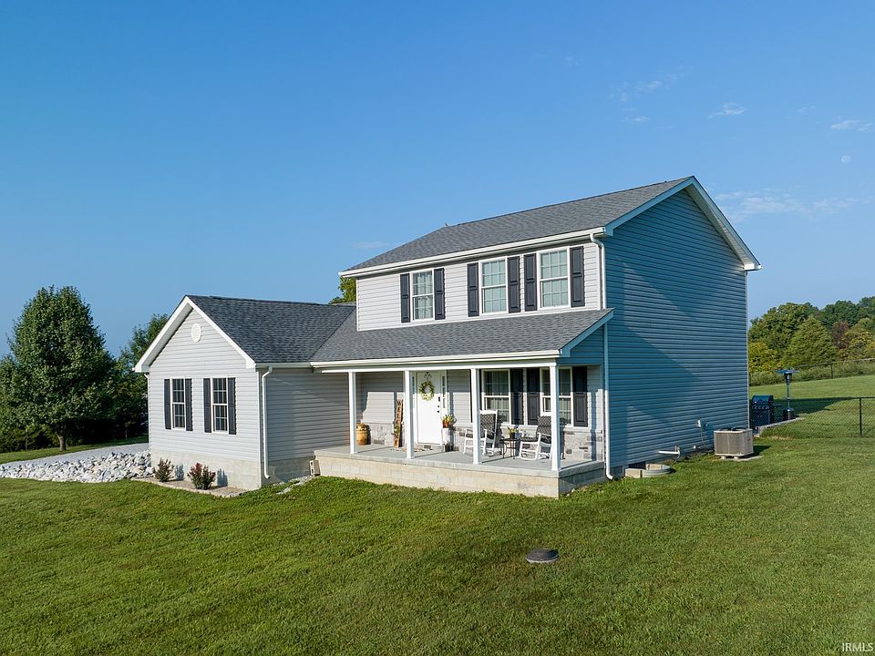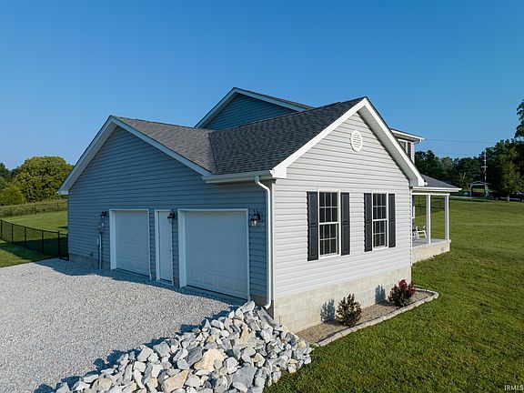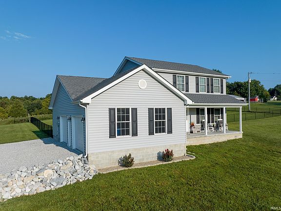 This lovely 3-bedroom, 2.5-bathroom home is designed to provide you a comfortable place to call home. The inviting entryway will lead you down a hall with a powder room, laundry/mudroom that connects to the 2 car side-entry garage. The kitchen is in the back of the home that features a L-shaped kitchen with a breakfast bar and slate appliance set that will stay with the home. The kitchen opens up to a spacious great room with vaulted ceilings and natural light. There are slider doors next to the kitchen that open up to the 18x36 patio and a fenced in yard for pets. Next to the kitchen is a separate dining room and a formal living room. Upstairs you will find all 3 bedrooms, a guest bath. The primary ensuite is a wonderful size with a full size shower and walk-in closet. The owners added extra insulation to keep the home energy efficient. The home is situated on 2 acres with a country setting but only minutes from downtown for shopping, restaurants, Otis Golf Course, and 20 minutes to Lake Monroe. Builders warranty will be transferrable to the new Buyer.