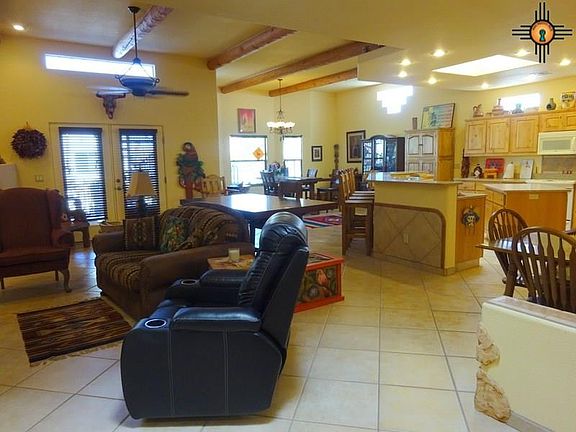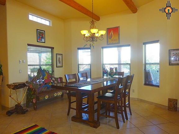 Young, 55+ Active Retirement Community w/HOA. Beautiful subdivision of Southwest, Pueblo styled homes in Deming, NM. This 2 bedroom, 2 bath, 1903 square foot model features, Kiva fireplace in living room, formal dining room, multi cabineted kitchen with bar seating, extra bonus area for library, den, hobby in Great Room concept. French doors to covered Patio with Hot Tub and entrance to Wine Deck and fabulous views of the Florida Mountains. Refrigerated air system, finished garage, desert landscaping and community club house. Easy drive to Interstate 10 to Las Cruces, Lordsburg, and Airport at El Paso, Texas. Silver City just up the road.