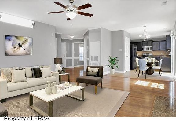 Located in Jack Britt district, this GORGEOUS Two-Story home features 3 Bedrooms & 2 Baths. Open living room with hardwood floor open to eat-in area. Kitchen with stainless steel appliances, cabinets (2018 paint!) & formal dining room w/trey ceiling. HUGE master suite w/ sitting area, features full bath w double sink, garden tub & large walk-in closet. Patio and a fully, fenced backyard! Move-In READY! Schedule your showing today, Welcome Home!