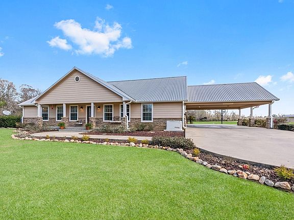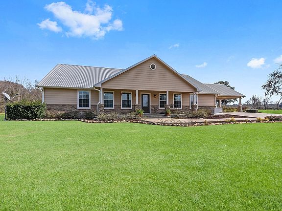 Experience the luxury of country living in this stunning custom 3 bedroom/2.5 bath nestled on 18.6+/- acres just a few miles from Hwy 59! This property is bordered by a creek which makes it easy to enjoy the peacefulness and beauty of nature, all while still being close to all the conveniences of town. This property features modern updates throughout, a cozy fireplace, an open concept kitchen with granite countertops, stainless steel appliances, and a spacious master suite. Outdoor features include a two-car attached carport, metal roof, HUGE back porch ideal for entertaining, above ground pool with deck, Generac generator, shop with electric, and several other outbuildings! Take advantage of this rare opportunity to own your own piece of paradise! Don't miss out - schedule a showing today!