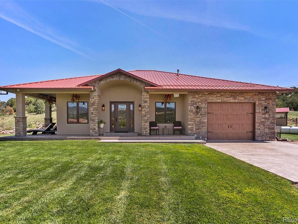 Welcome to this picturesque & stunning Colorado ranch property poised on 40 acres of gorgeous land boasting 360 degree panoramic views of the Wet Mountains & Pikes Peak. Light & bright, enjoy views for miles from every window. Completely updated & upgraded, this ranch style home w/modern style & comfort is the perfect sanctuary. The custom chef's kitchen features a huge eating isle, SS appliances, high end cabinetry & features a separate eating area/sitting room. Old world beams, custom shelving & a dramatic modern fireplace showcase the Great Room. The stylish dining room provides formal or informal entertaining. The exquisite owner's suite w/a luxurious & modernized bathroom is the perfect retreat. An updated laundry w/new washer/dryer, tons of storage & pantry, an updated 2nd bedroom & remodeled bathroom w/heated flooring rounds out this floorplan. Beautiful landscaping w/a custom serene water feature, productive fenced & irrigated garden, lush & irrigated grass areas at the home & barn, hot tub, daily flocks of birds, deer, turkey & other wildlife create a private & quiet setting w/unmatched serenity. Hiking, outdoor activities & a short drive to multiple towns make this home perfectly located. An equestrian's dream, there is a high-end Heritage insulated barn w/5 Priefert indoor stalls each w/separate gated turnouts, tack room, large hay storage barn & loafing shed. Featured in the barn is a separate & partially furnished guest quarters w/a bedroom, bath, kitchen, dining & living room that could potentially serve as an income/rental property or great space for family/friends. Exceptional space in the barn allows for 4 cars or an RV plus a large workshop area. Your horses will love room to roam with cross fenced pastures. Well maintained roads lead to a newly resurfaced driveway. High speed 30MB DSL is more than ample for remote work or streaming. Added upgrades include on demand hot water & an extensive water filtration/softener. COLORADO LIVING AT IT'S BEST!