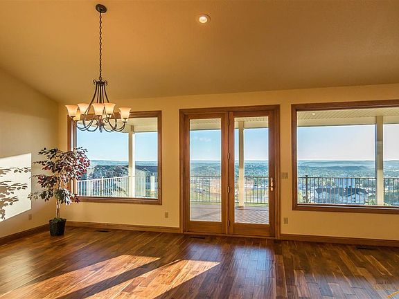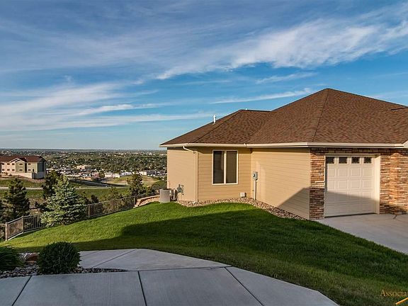 Enjoy a bird's eye view of Rapid City from this gorgeous executive zero entry home! Located at the end of a cul-de-sac, this home offers privacy and is less than a five minute drive to the hospital. Enjoy all the upscale amenities including hardwood flooring, granite countertops, tile flooring, granite surround fireplace and oversize Anderson windows. The spacious master suite features a walk-in tile shower, heated tile floors, jetted tub, his and her vanities and a walk-in closet featuring custom built-ins. The large covered deck offers city lights and badlands views. Enjoy one level living with NO STEPS in this quality-built Reyelts Construction home.