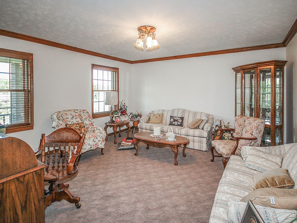 This spacious, well-maintained all brick rancher sits on a large lot in an established neighborhood. It is convenient back to highways, the airport, and lake access. Main level features 3 roomy bedrooms, 2 full baths, a formal living room and kitchen/dining combination. Kitchen has new appliances. Downstairs is a huge rec room with wood-burning fireplace (has gas logs in it now). There is an over-sized bath with laundry downstairs. The huge garage offers plenty of room for a workshop or extra storage plus two cars. This house may be the perfect one for you.
