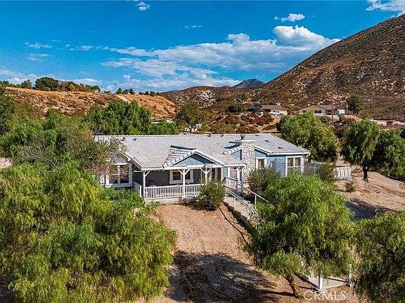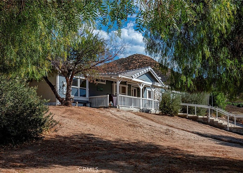 Spruced up and back on the market with an improved price is this Acton Horse Facility ~ Amazing opportunity to own this one of a kind horse ranch sitting on 5 private acres conveniently located in Acton. This former breeding/training facility comes fully equipped with endless possibilities for training, boarding, lessons, breeding, clinics, or as a working ranch, this property truly caters to all equine needs. Included is a 4 stall breezeway barn with foaling pen, tack room and attached private office with a/c, 8 stall mare motel, 4 paddocks, a separate Stud pen, 50’ round pen, Palpation chute included, Wash rack with hot water, and large arena with solar lights and covered viewing area. The detached 1500 sq.ft. ADU is perfect for a caretaker or guests and is ready to finish to your taste. Relax by the pond with waterfall after chores and enjoy the tranquility this property offers or take a dip in the above ground pool. The ranch style home is loaded with exceptional features beginning with beautifully distressed wood floors, a large formal living room with warm rock fireplace, vaulted ceilings, front door leading to the comfy sitting porch outside, next is the kitchen with its large walk-in pantry, plenty of countertop and cabinet space, a worktop island, walk-in pantry, breakfast bar and breakfast nook plus a formal dining room. Large family room with yet another fireplace for those cozy family gatherings. The Primary Suite is large and inviting with its vaulted ceilings, en suite bath with double sinks, separate tub/shower, walk/in closet and french doors leading to the fenced backyard. This home was thoughtfully built to include character and charm creating a lived in comfortable atmosphere. There are three additional bedrooms, a full bathroom, separate laundry room with half bathroom. Covered front porch with exceptional sunset views. Two car detached garage. Warm sunsets and lots of privacy is yours with this dream property!
