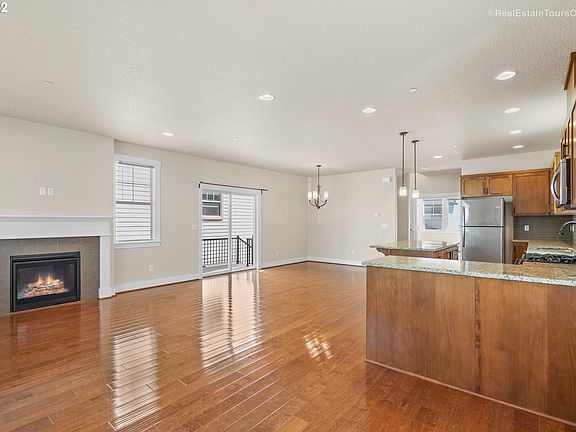 Fabulous 4 beds+bonus house sit in Villebois community quietly, great location with only a short walk to Lowrie Primary school and community center. Deep setback from street, overlooking front green belt and back Mt Hood view. Super open layout with wood floors throughout the main. 4 bedrooms and laundry upstairs. Bonus office or recreation room on the main. Enjoy the front porch and side patio. AC, refrigerator, washer and dryer stay. The 2017 house is well maintained like new, move in ready.