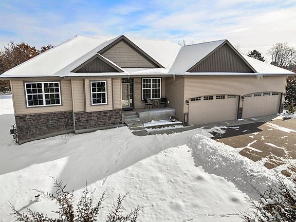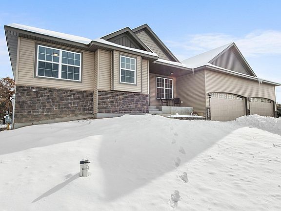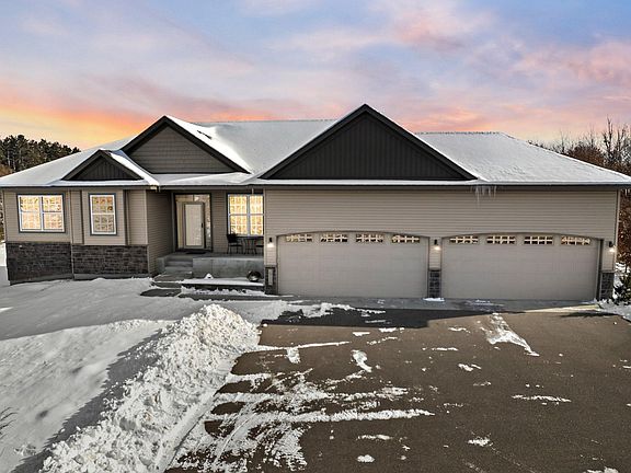 built in oven and microwave, corner pantry and corner sink, sidewall countertop and cabinets. Electric floor heating in bathrooms, Primary suite with Sliding door to deck, large walk in closet and split vanity sinks ,Main floor laundry room, U shaped stairs to the basement with decorative wrought iron balusters and stair lighting. In-floor heating in basement and garage, Mudroom with built in lockers, Full length composite deck, covered front porch, Plenty of room in the unfinished basement for additional bedrooms, family room and office. Outbuildings allowed. Great location near Sherburne National Wildlife Refuge, Elk Lake and approximately 15 minutes to Elk River. Please review supplements to the listing.